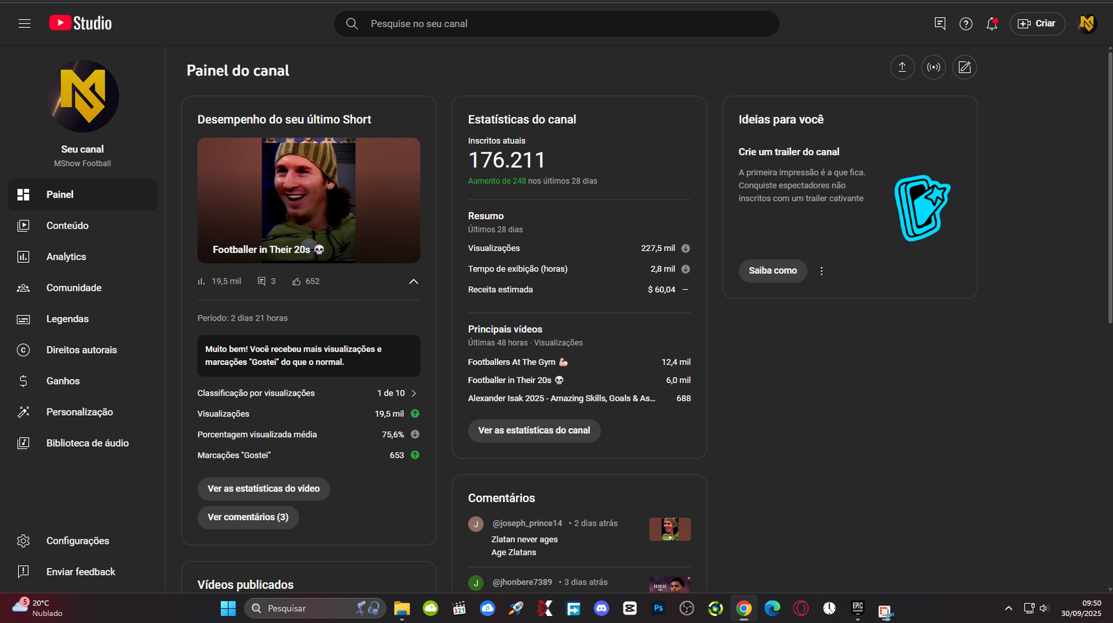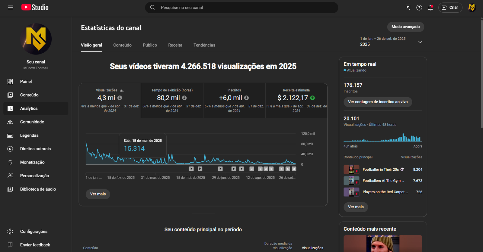 CANAL DE FUTEBOL 106K DE INSCRITOS COM MUITO POTENCIAL! NÃO MONETIZADO