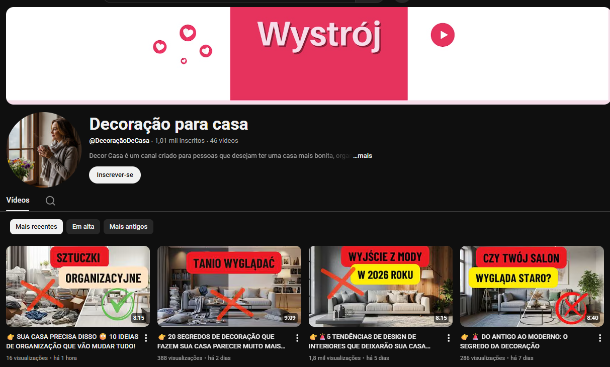 O nicho casa e decoração é um dos mais seguros para crescimento sustentável dentro do YouTube.