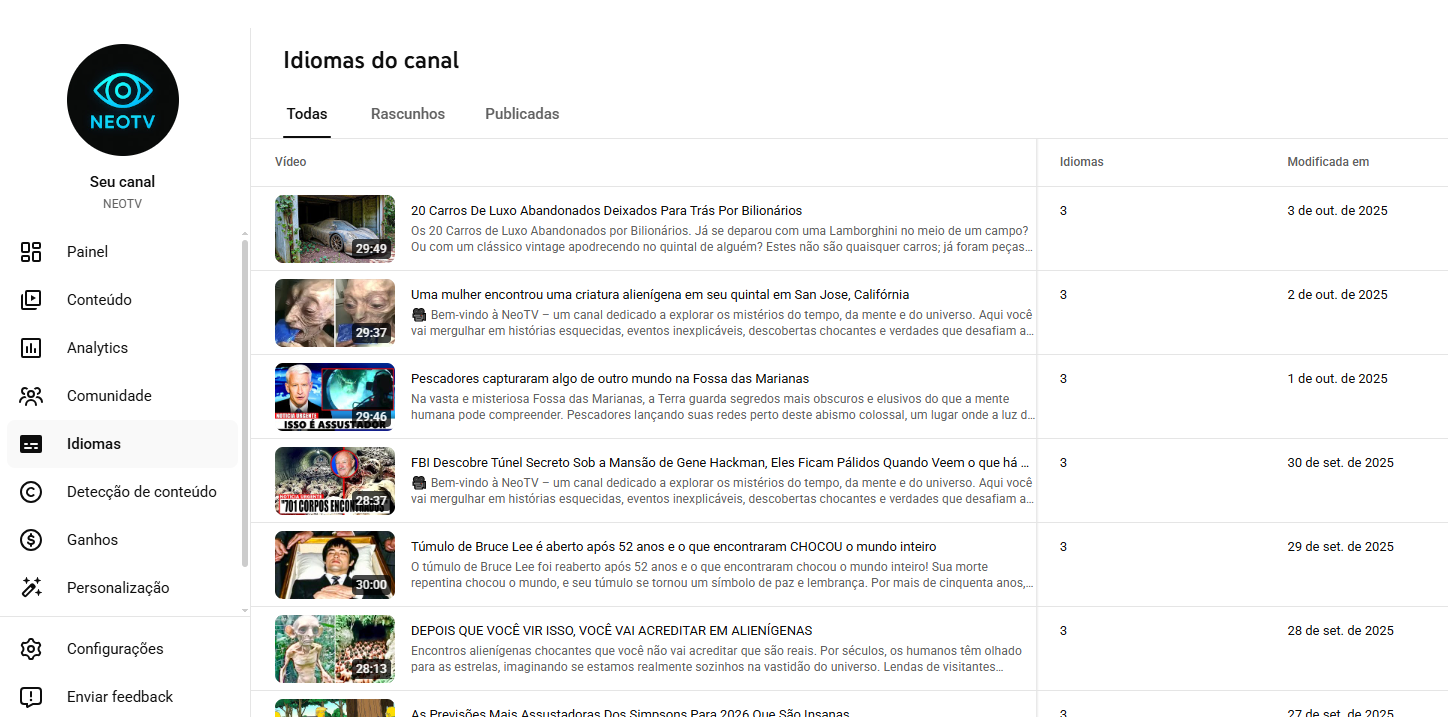 📺 Canal YouTube à Venda – NEOTV
