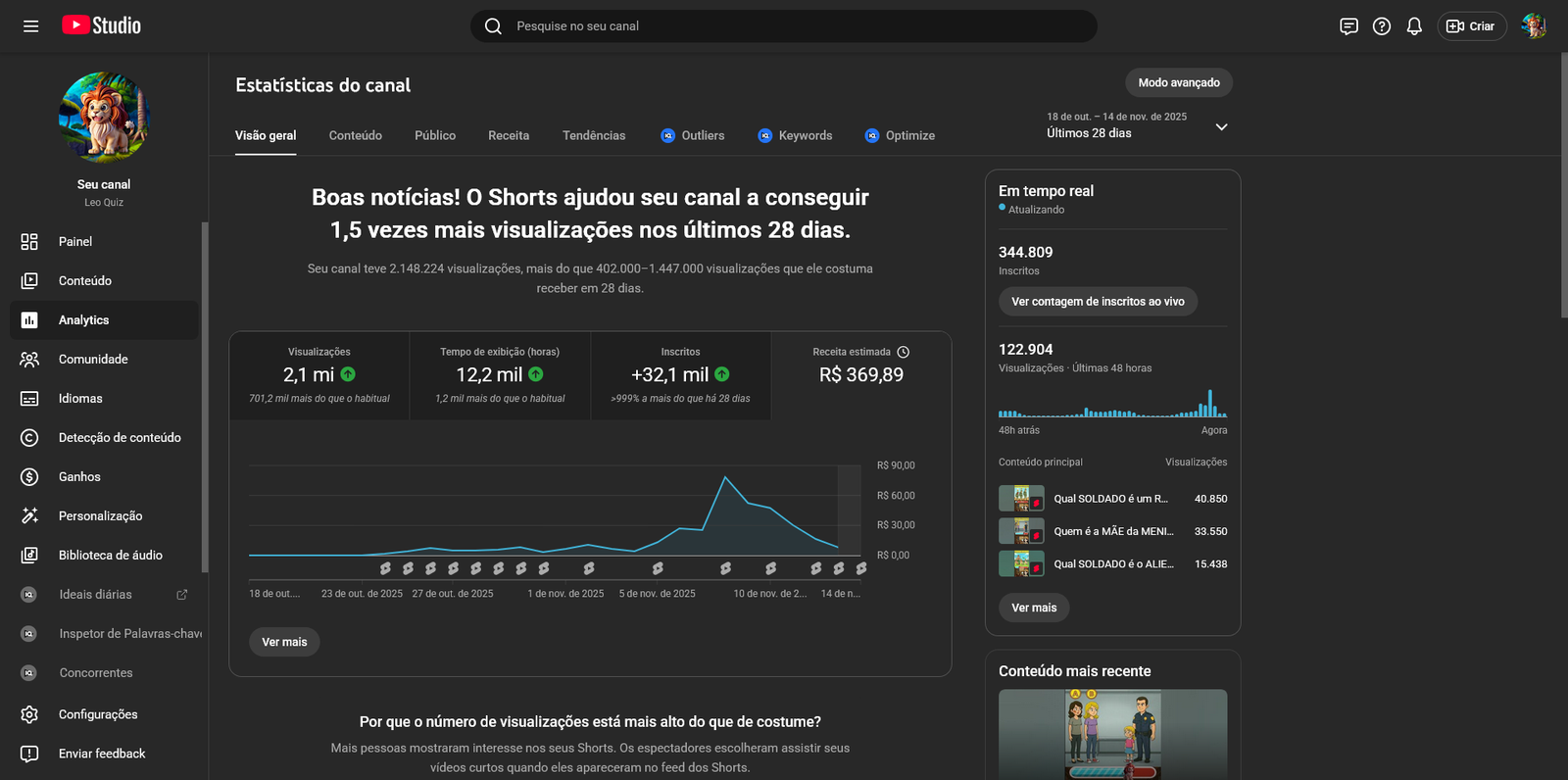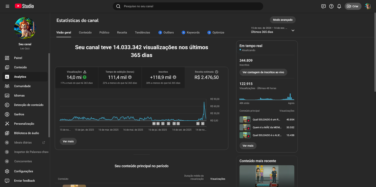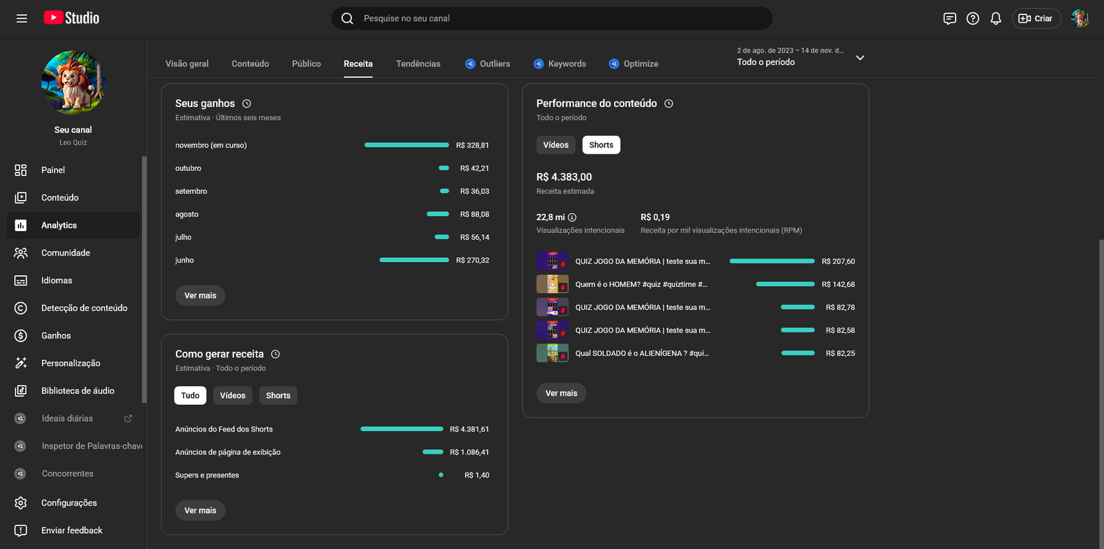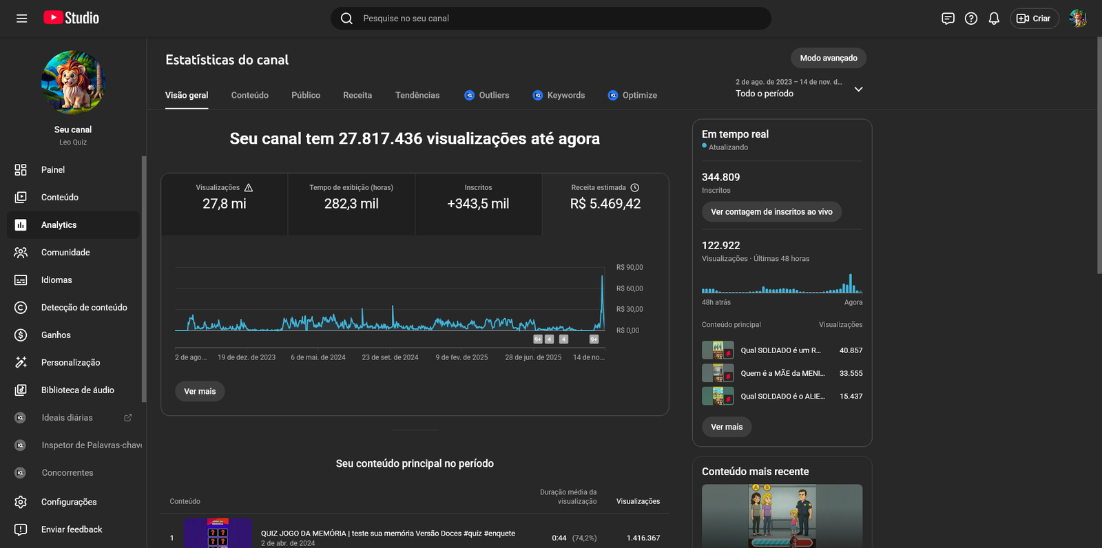 Está à venda um canal do YouTube consolidado no nicho de entretenimento interativo, com foco em quizzes, desafios e curiosidades. O Leo Quiz já conta com +345k de inscritos, comunidade engajada e conteúdo pronto para escalar.