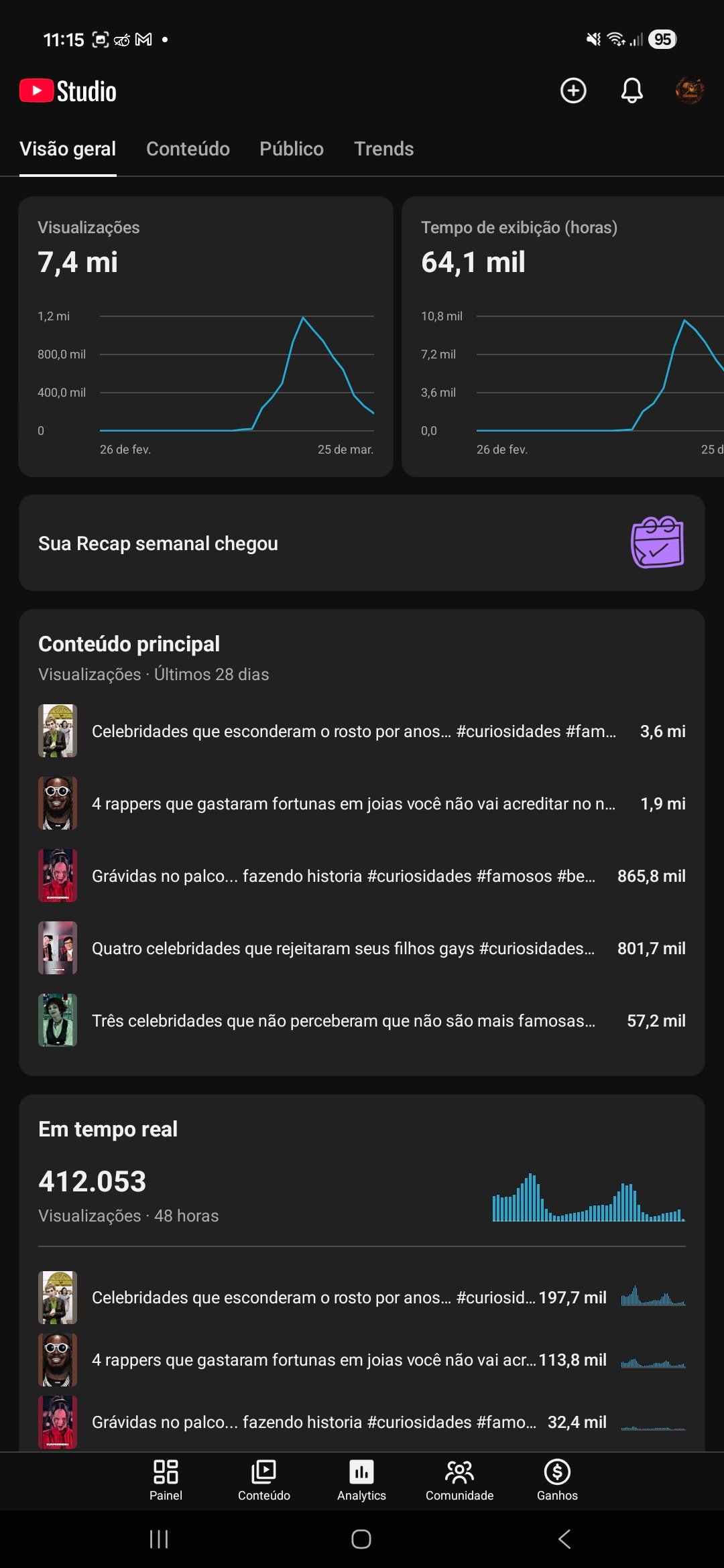 📈 7,4 milhões de visualizações nos últimos 28 dias