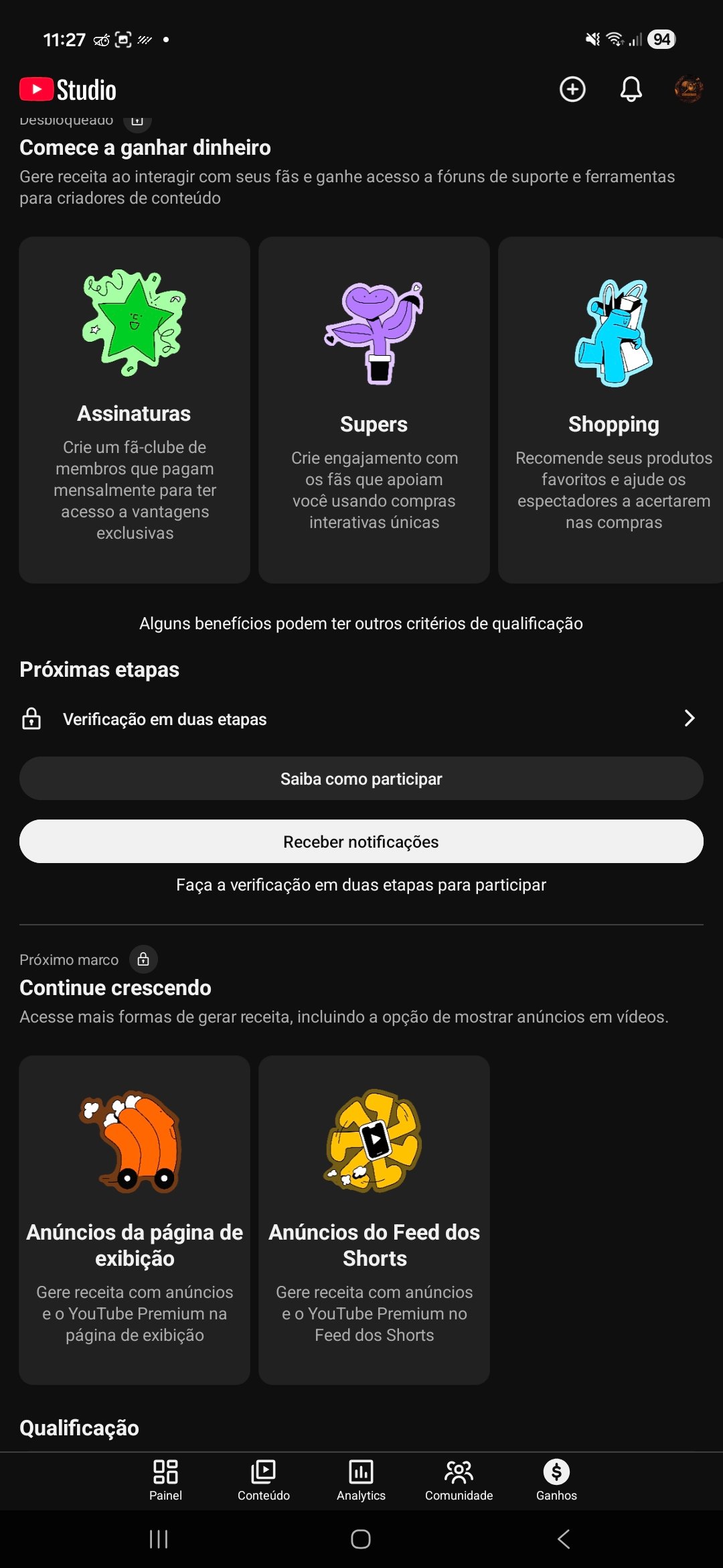 ⚡ Monetização em progresso + recursos do YouTube já disponíveis