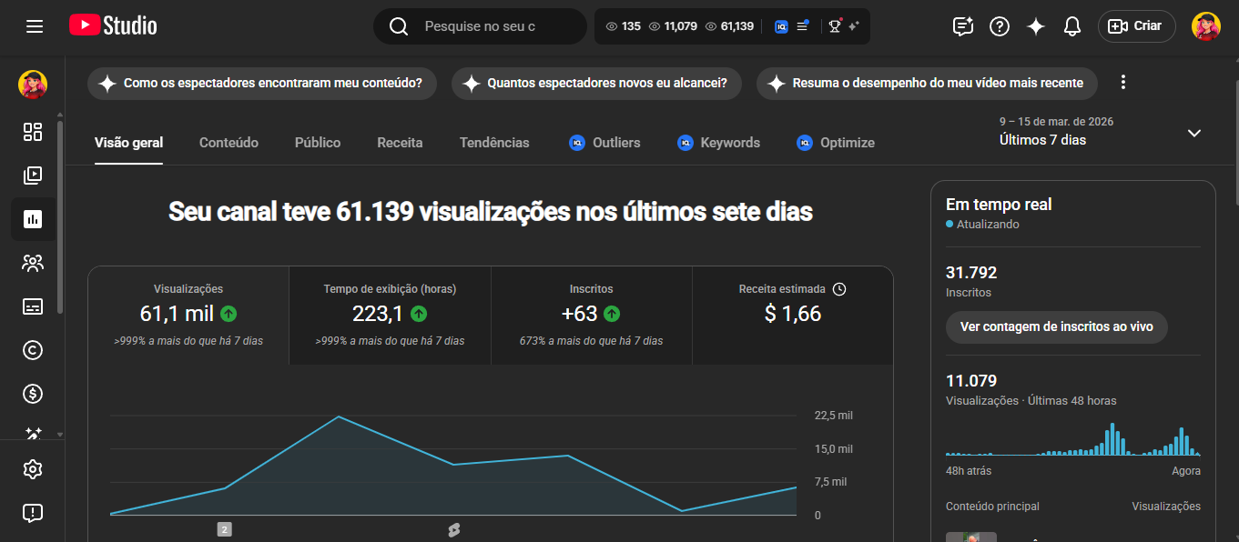 CANAL YOUTUBE MONETIZADO | 31k INSCRITOS | 5 MILHÕES DE VIEWS | NICHO ENTRETENIMENTO | ALTO POTENCIAL // valor baixo pra sair logo