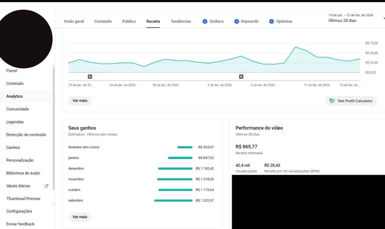 ✅ Renda passiva: O canal já gera uma renda de R$ 1.000 por mês, com um CPM de R$ 23, o que significa mais ganhos com menos esforço.