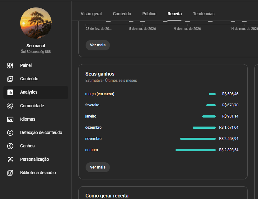 - Detalhes do Rendimento: O canal gera entre 800 a 1000 reais por mes atualmente. (não me dedicando muito). Motivo da venda: falta de tempo