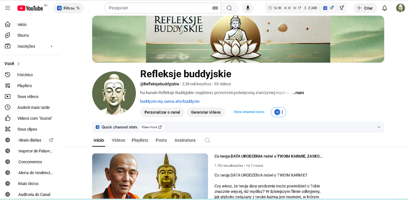 Estou sem tempo para cuidar desse canal, canal de budismo na língua polonesa, 2.385 inscritos