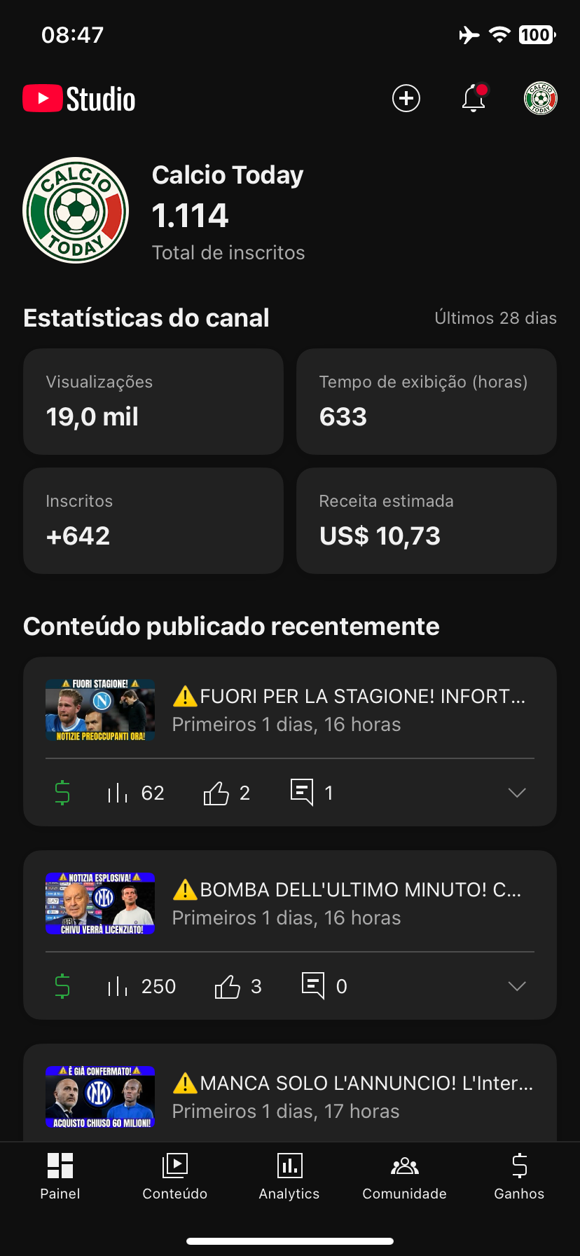 Canal de notícias de times italiano, RPM MUITO BOM, recém monetizado.