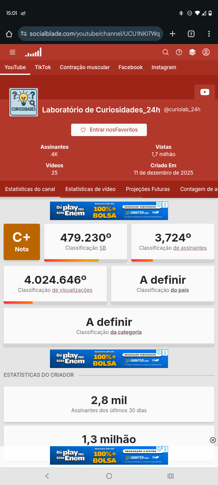 Canal de YouTube Shorts no nicho Curiosidades, com crescimento orgânico acelerado, excelente retenção e vídeos frequentemente viralizando.