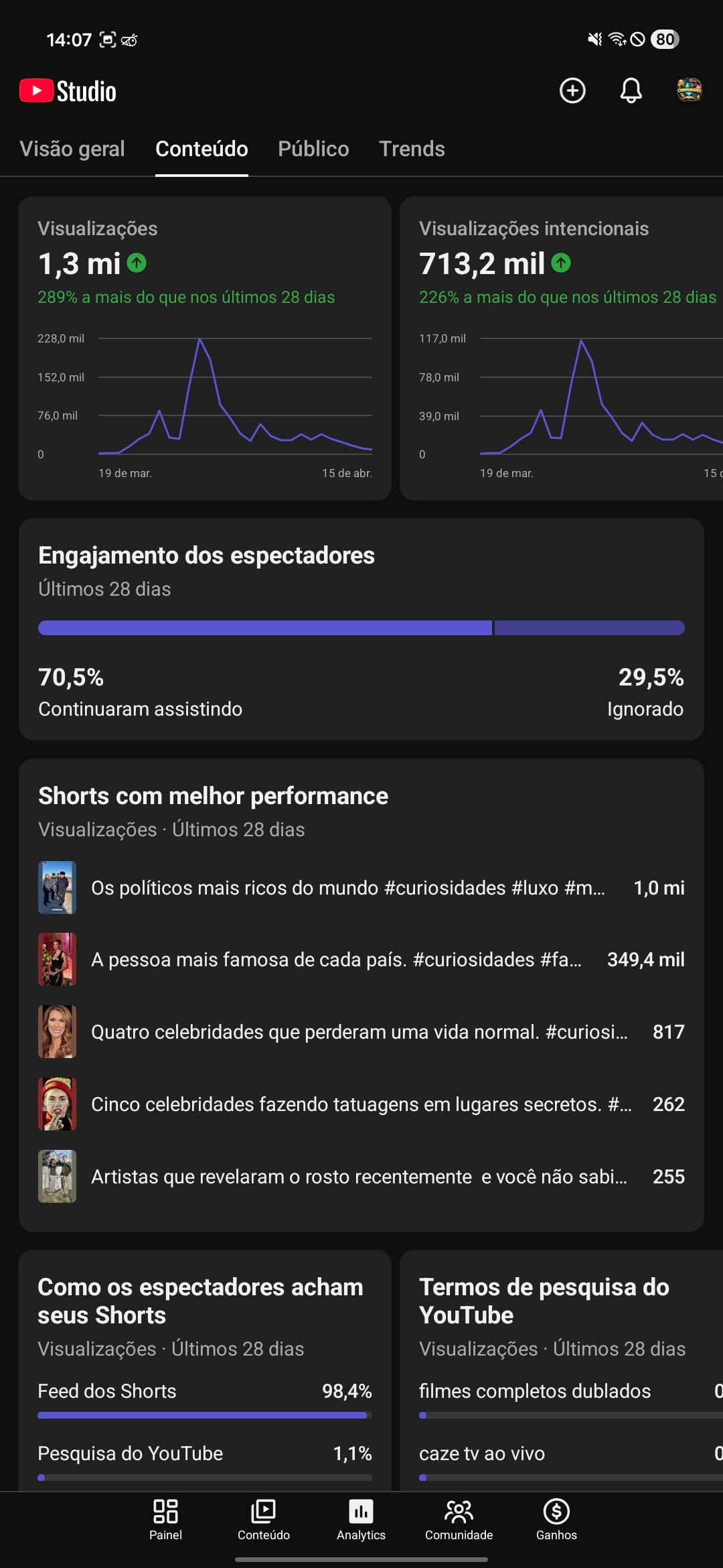 1,3 milhões de visualizações nos últimos 28 dias