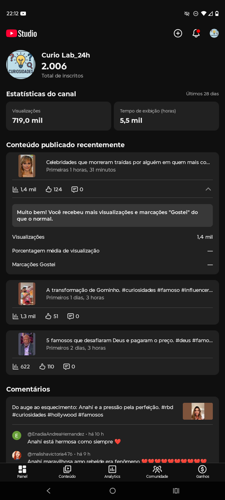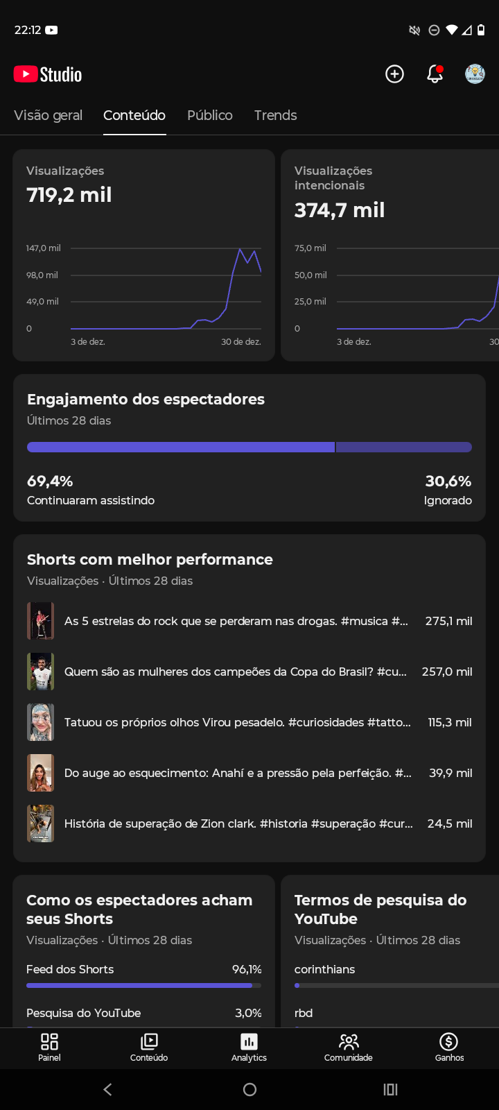 Canal YouTube Shorts com +700 MIL Visualizações Orgânicas (28 dias)