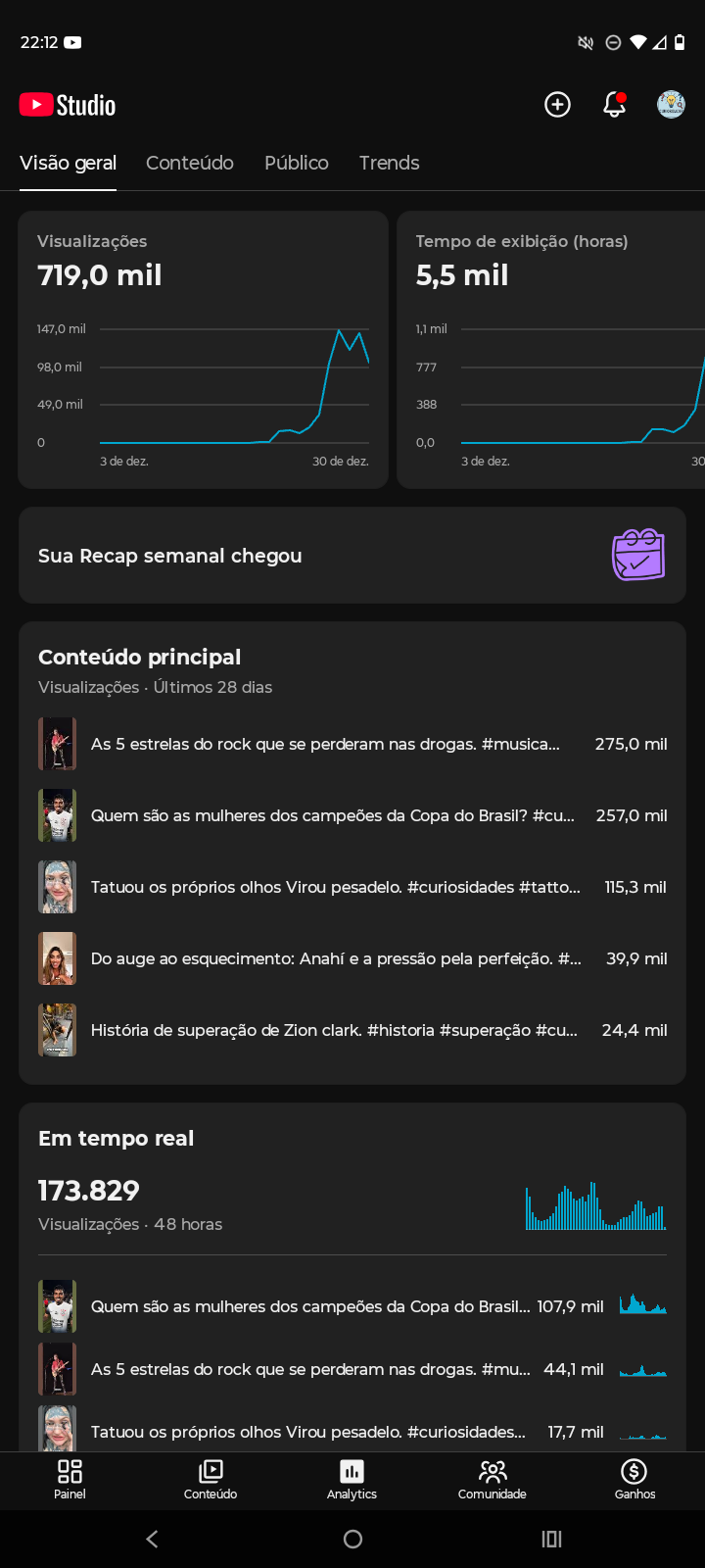 Resultados reais: mais de 700 mil visualizações em 28 dias, com retenção acima da média.