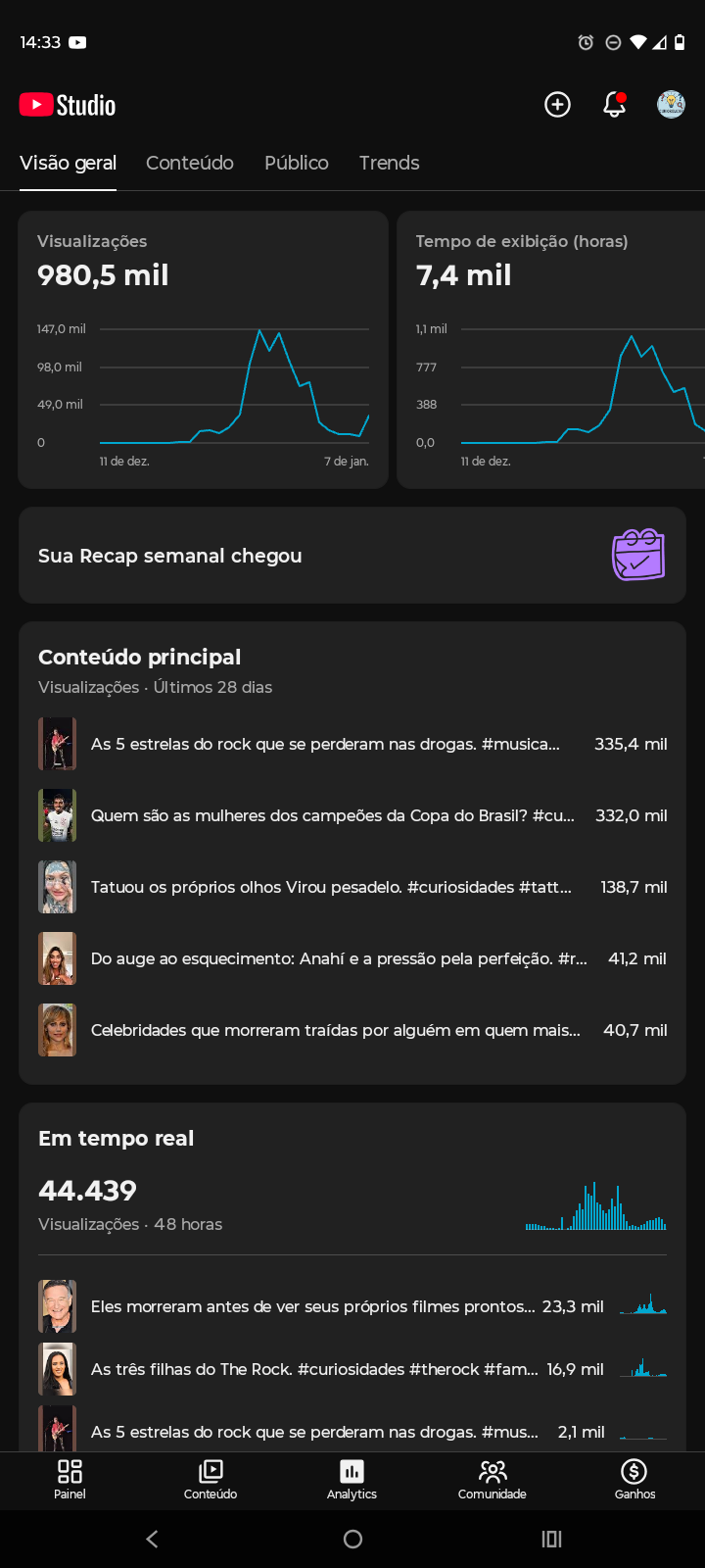 Resultados reais: mais de 968 mil visualizações em 28 dias, com retenção acima da média.