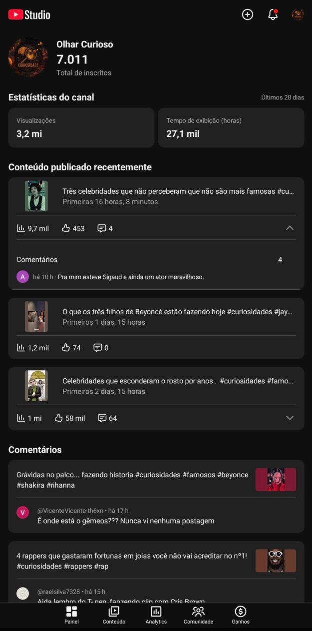 🚀 Canal YouTube com +7K inscritos e +3.2M views