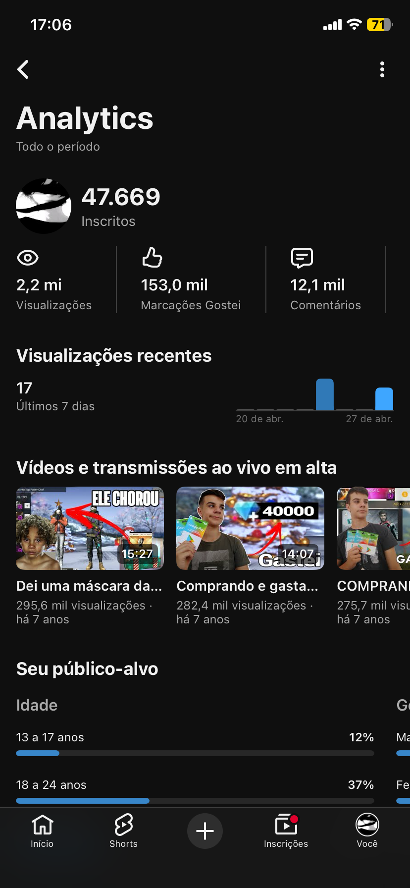 Canal YT 50K de inscritos, 2,2M visualizações.