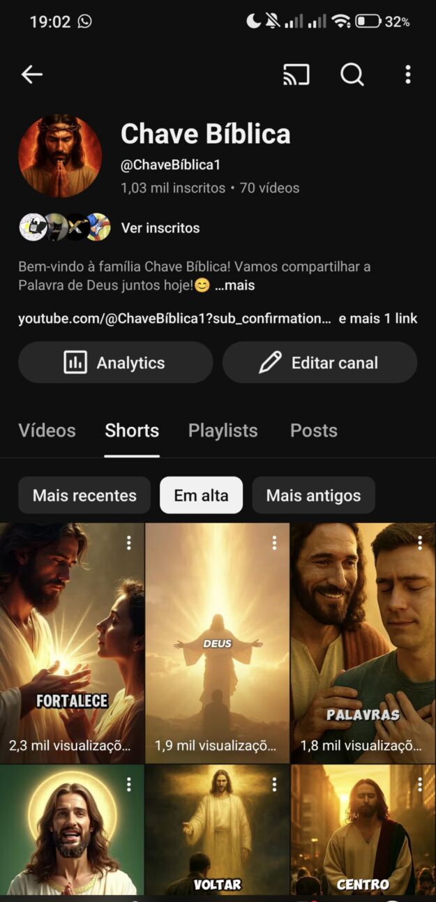 Canal de espiritualidade, canal com mil inscritos e todos vídeos acima de 1000 visualização, da pra ganhar com ele divulgando produtos em média 2000 reais, parei de criar vídeos porque tenho outro canal