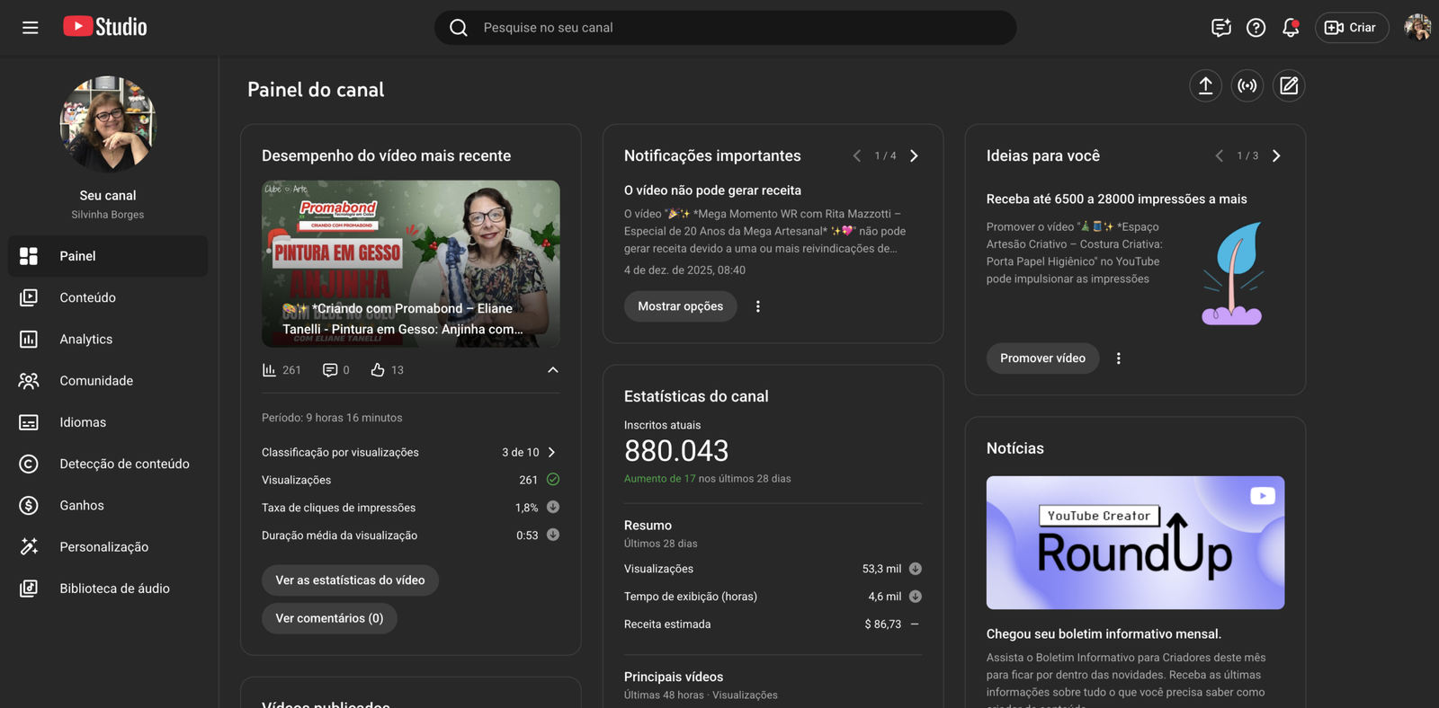 Clube Arte – Silvinha Borges – Monetizado – 880k inscritos