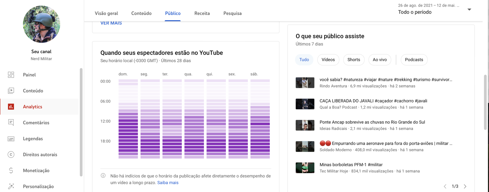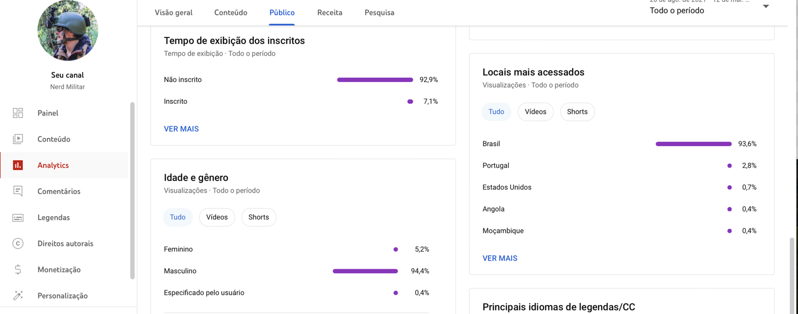 Isso vale também para o Facebook e o Youtube, que são as segundas redes que mais monetizam, atrás somente do Tik Tok, os vídeos são entregues para a maioria dos públicos. Isso pode ser confirmado no painel do Youtube, onde é possível ver os outros canais que o público assisti, que são de outros assuntos.