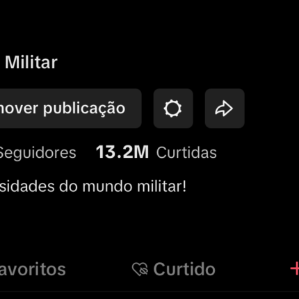O canal Tik Tok tem 207 mil seguidores mas tem 9.6 milhões de curtidas! isso significa que o ele atinge a maioria dos públicos e não somente a minoria interessada em videos militares, onde acaba sendo possível fazer vídeos de curiosidades e historias diversas.