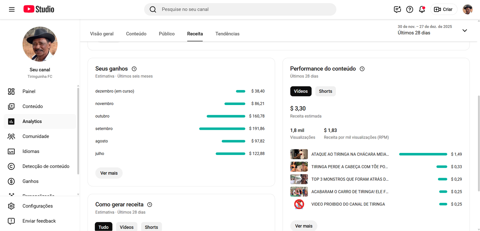 Canal muito bom, muitas view diarias, ainda está quente, não estou tendo tempo de administrar, só dar continuidade no trabalho.