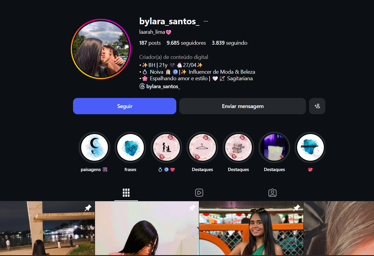- Link da Conta: https://www.instagram.com/bylara_santos_?igsh=Y2ExdXRydGN1MzZn
