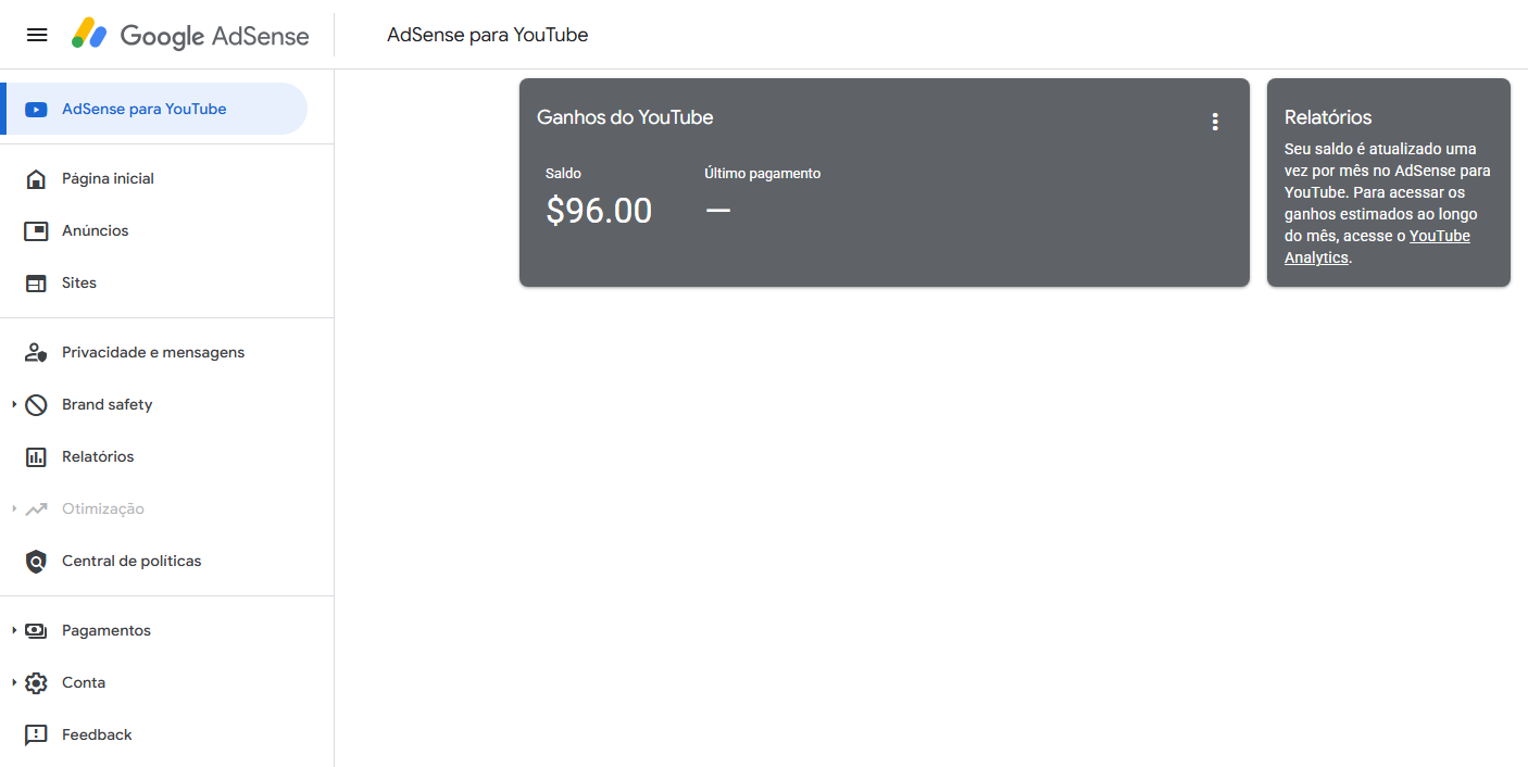 Conta Adsense 2025 PIN+ 96 Dólares Saldo Youtube