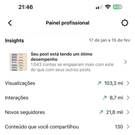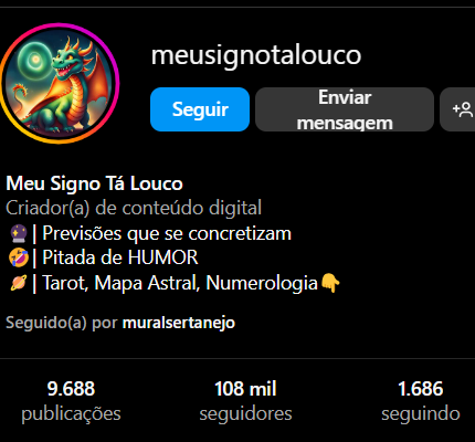 Conta com dez mil seguidores reais e trinta milhões de alcance total, entregando números muito acima da média para perfis desse tamanho.