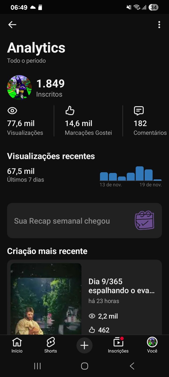 A conta tem apenas 9 videos e conta com mais de 1.8 MIL inscritos E mais de 60 mil visualizações com um ótimo engajamento (CORRA PARA GARANTIR ESTA CONTA NA PROMOÇÃO QUE VAI DURAR APENAS ATÉ O DIA 20 DE NOVEMBRO).