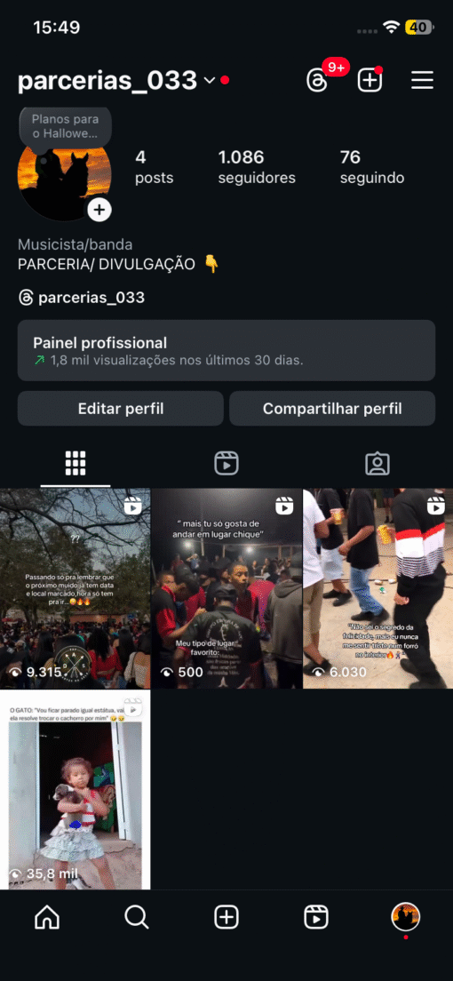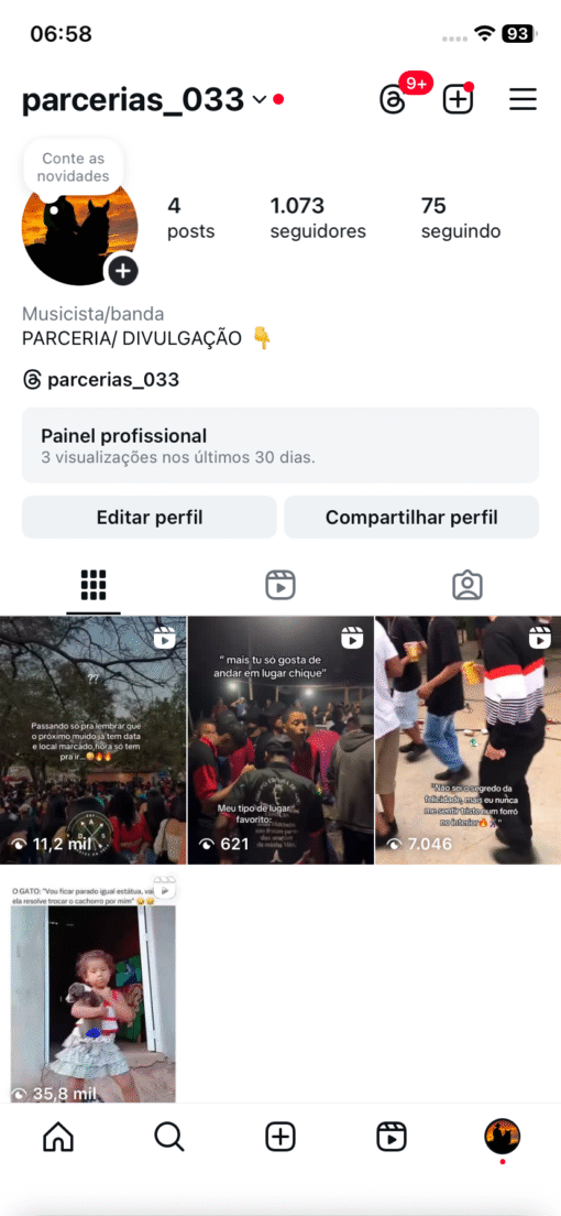 Conta de Instagram com bom engajamento a conta está começando a dar enjamento