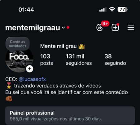 Perfil Engajadíssimo, perfeito para subir. 33,3 mil seguidores