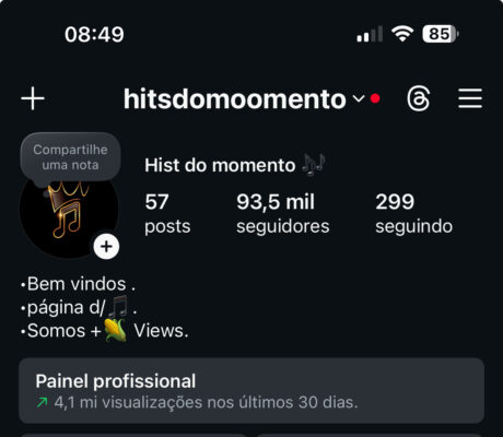 Conta ótima para empreender nicho música 93,6 mil seguidores