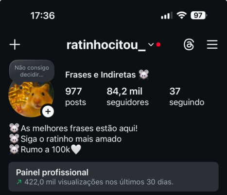 Perfil Engajadíssimo, perfeito para subir. 33,3 mil seguidores