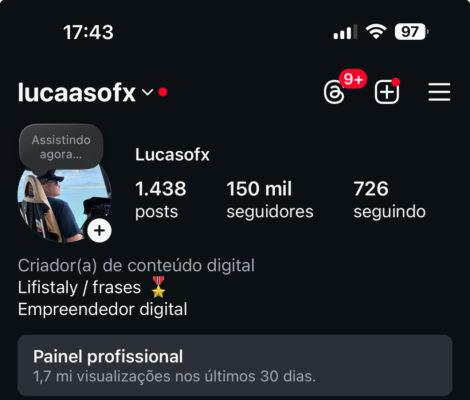 Perfil está ganhando em média 400 seguidores por dia, público 50% feminino e 50% masculino, 30+. Galera que compra muito. Ótima pra fazer dinheiro.