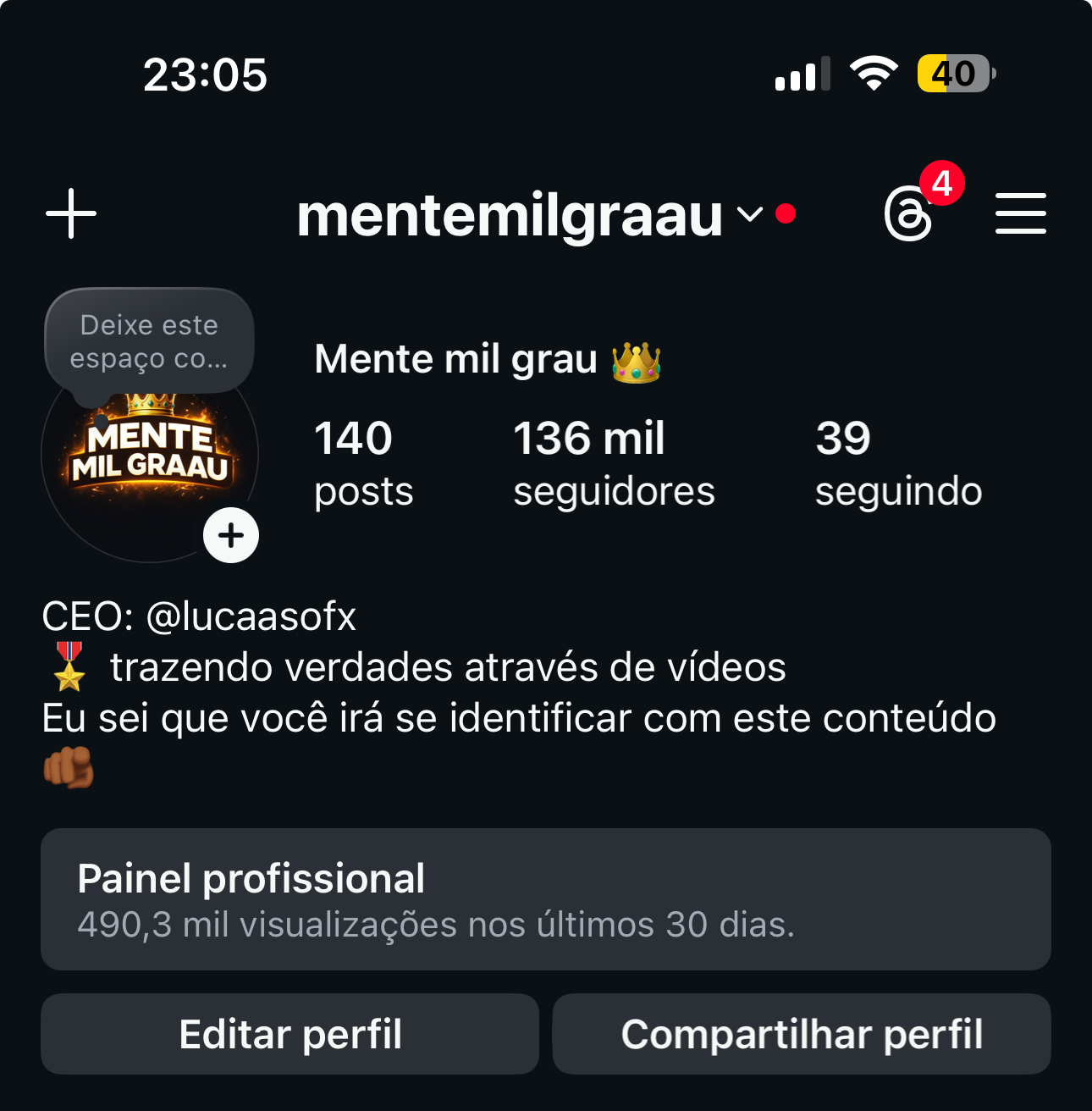 Perfil de MOTIVAÇÃO INSTAGRAM com 128 mil seguidores, mentalidade
