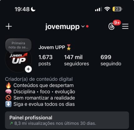 Página de motivação com alta taxa de vitalização 147 mil seguidores