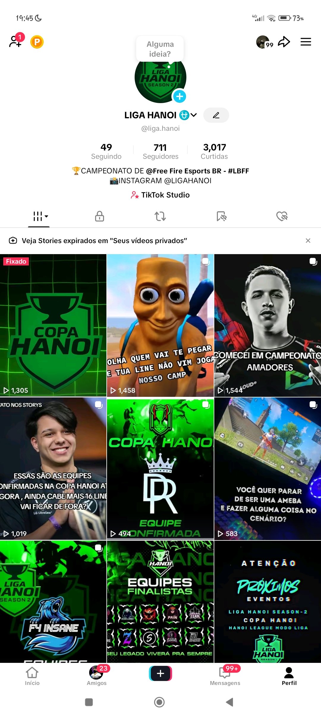 Conta de Tik Tok com 711 seguidores , muito boa para quem não quer começar do zero