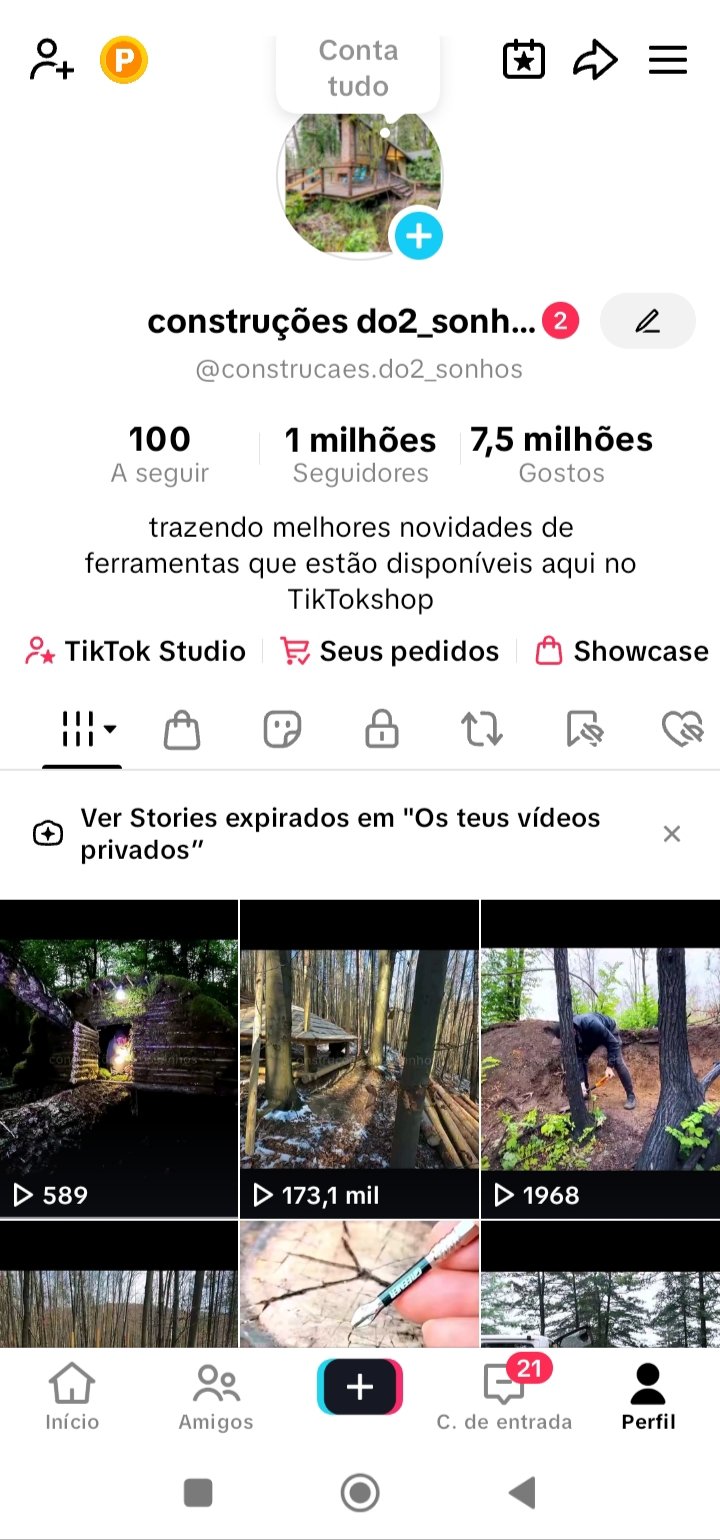 Conta Tik Tok com 1 milhão de seguidores, monetizada e com Tik Tok shop ativado, e outras ferramentas disponíveis