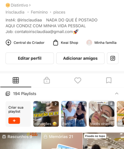 Perfil pessoal monetizado, sem constância nas publicações, nicho de novelinhas
