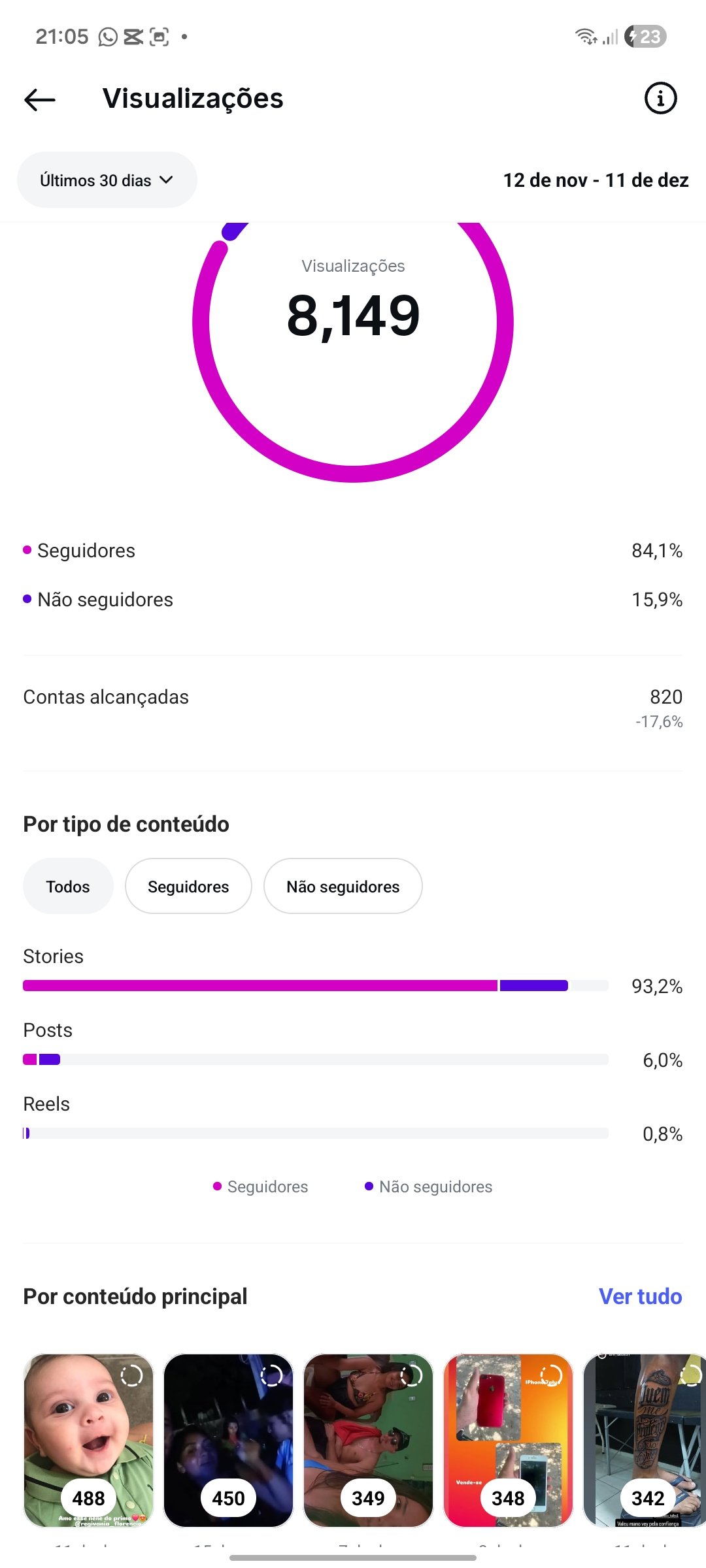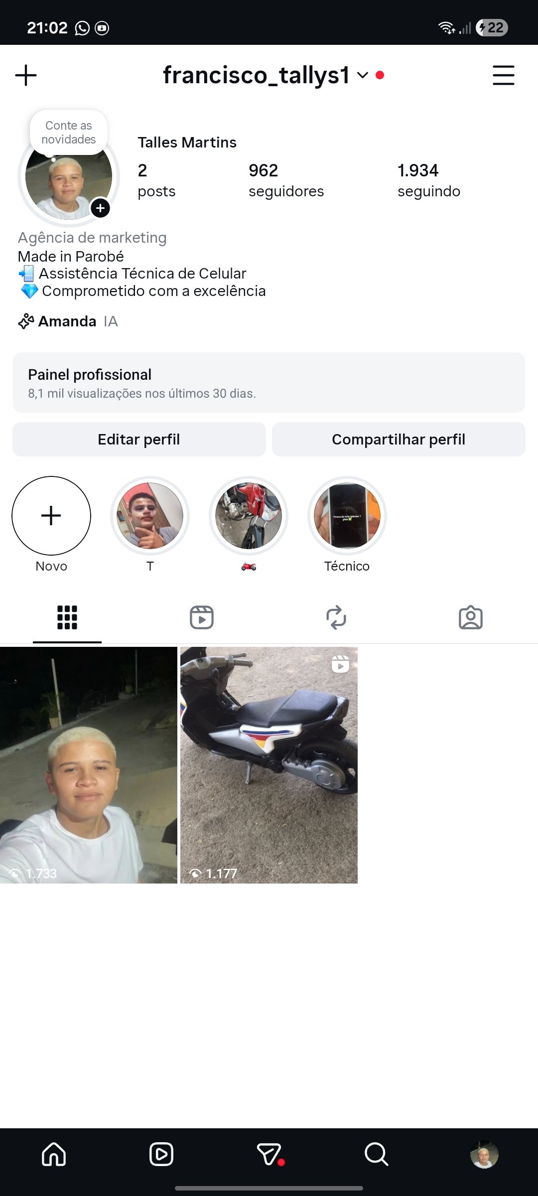 Conta do Instagram 962 seguidores
