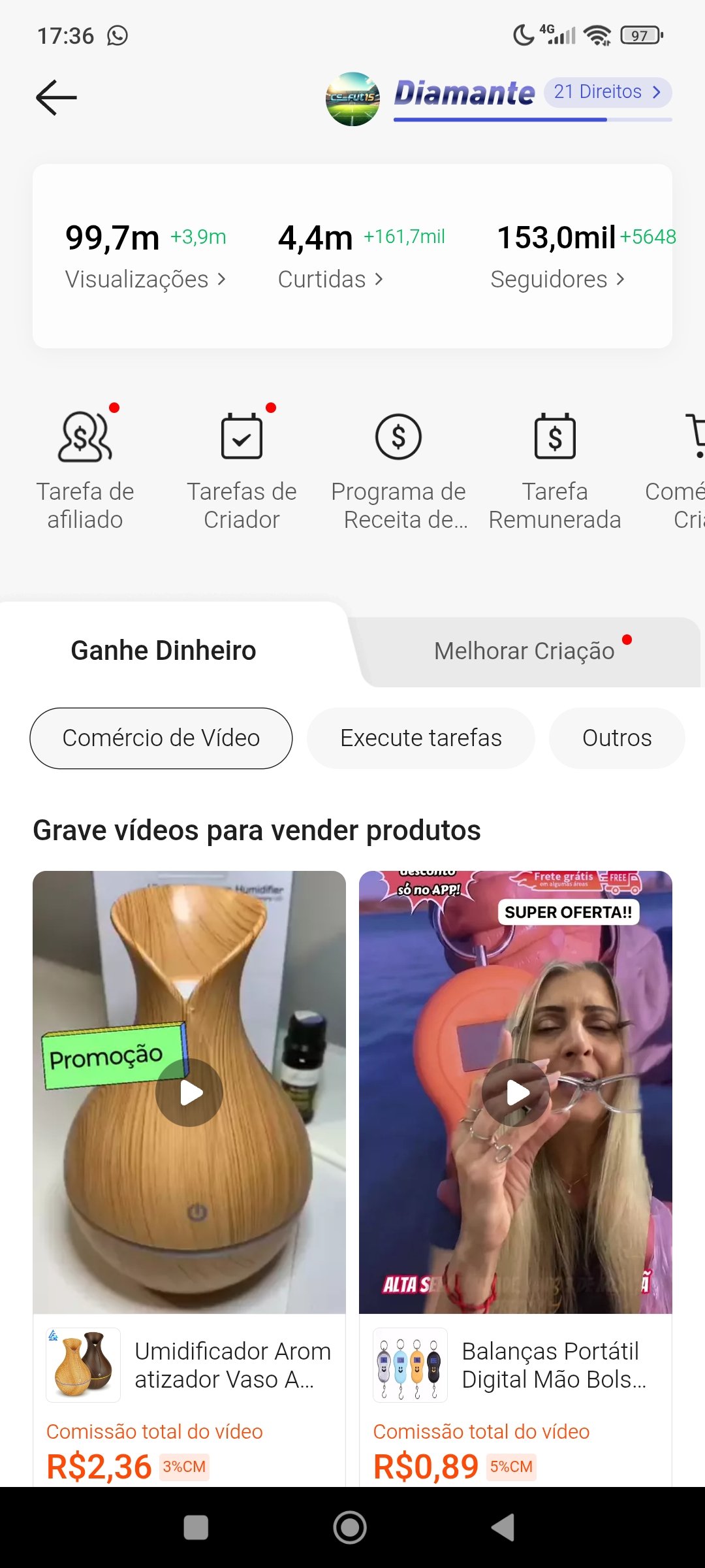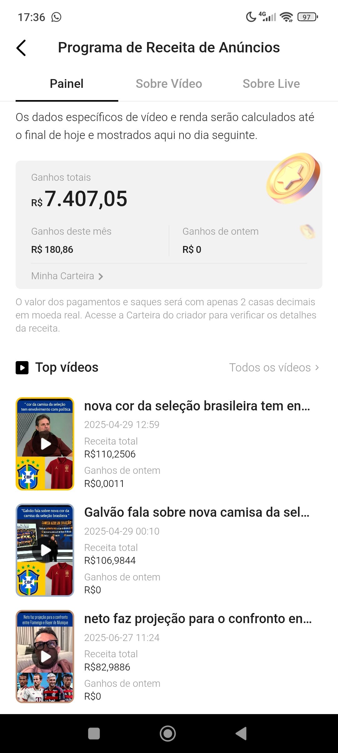 Conta do Kwai monetizada, pagamentos cai todos os dias.