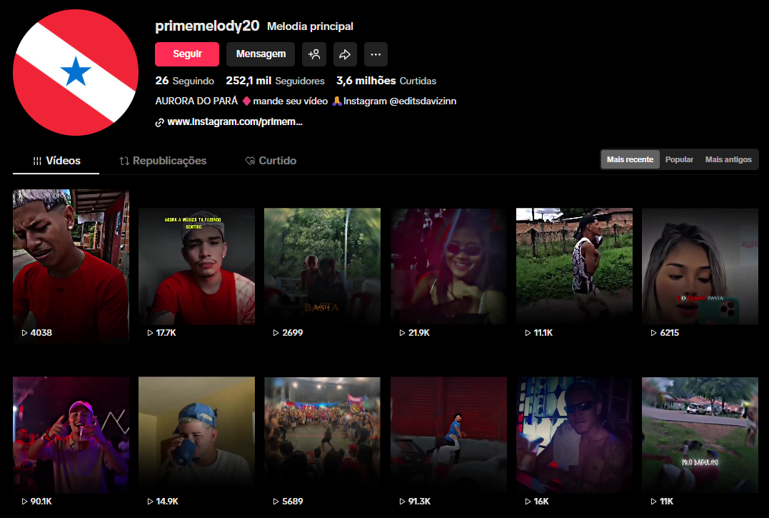 - Link da Conta: https://www.tiktok.com/@primemelody20?_t=8j8S5ZbCGb0&_r=1
