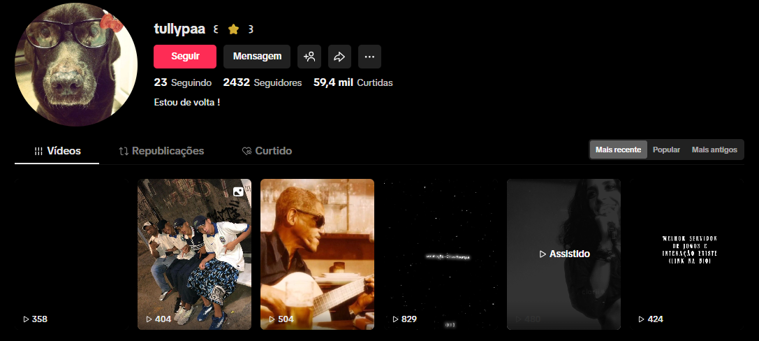 - Link da Conta: https://www.tiktok.com/@tullypaa?_t=8iIT9CSXaEP&_r=1