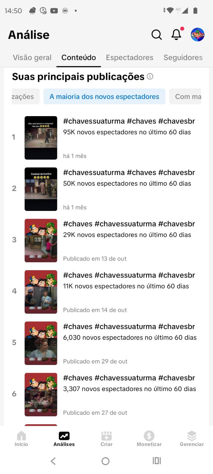 Conta de cortes do chaves. Com mais de 3k de seguidores, E mais de 100k de visualizações em um único video