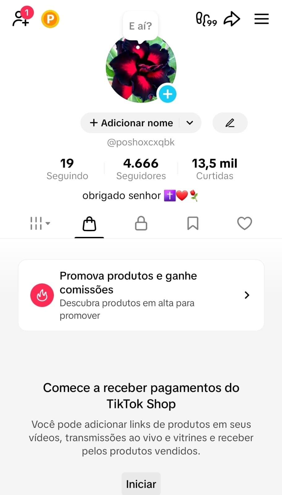 CONTA DO TIKTOK COM SHOP ATIVO +4,6K SEGUIDORES +13,5K CURTIDA(ENGAJAMENTO REAL)