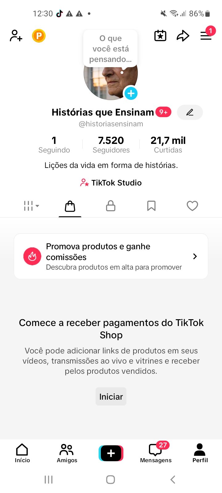 CONTA DO TIKTOK COM SHOP ATIVO +7,5K SEGUIDORES +21,7K CURTIDA(ENGAJAMENTO REAL)