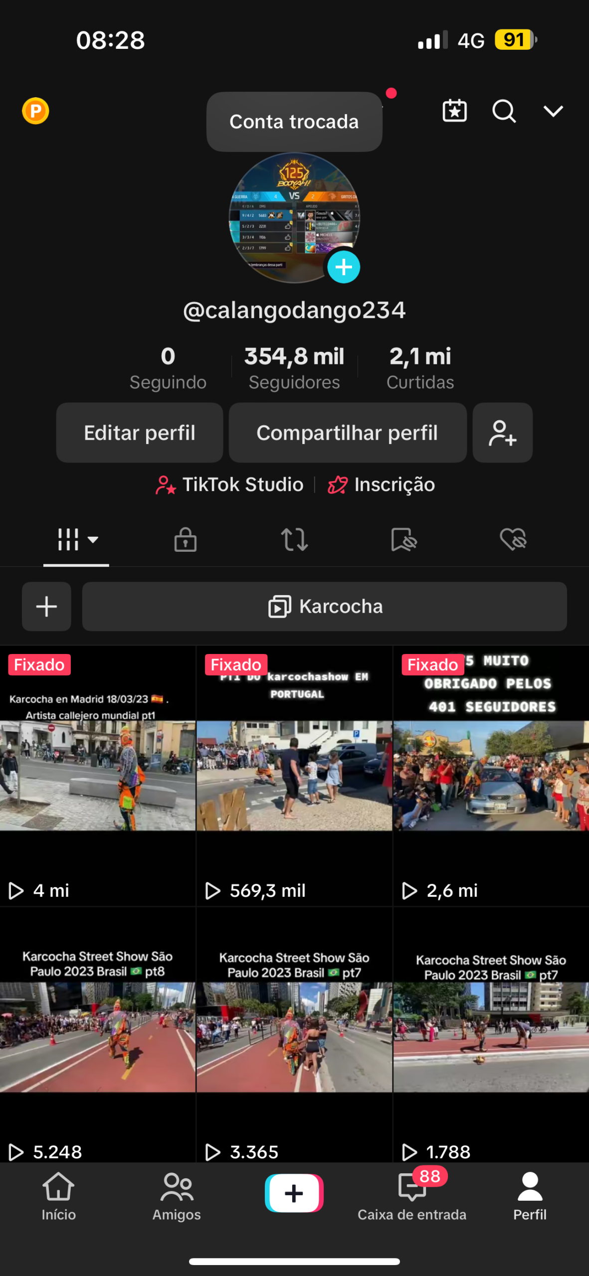 Conta do Tiktok de 354 Mil Seguidores