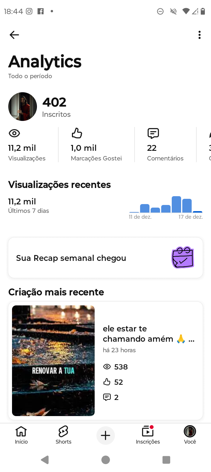 Canal YouTube com mais de 9k de inscritos e 1mi de visualizações