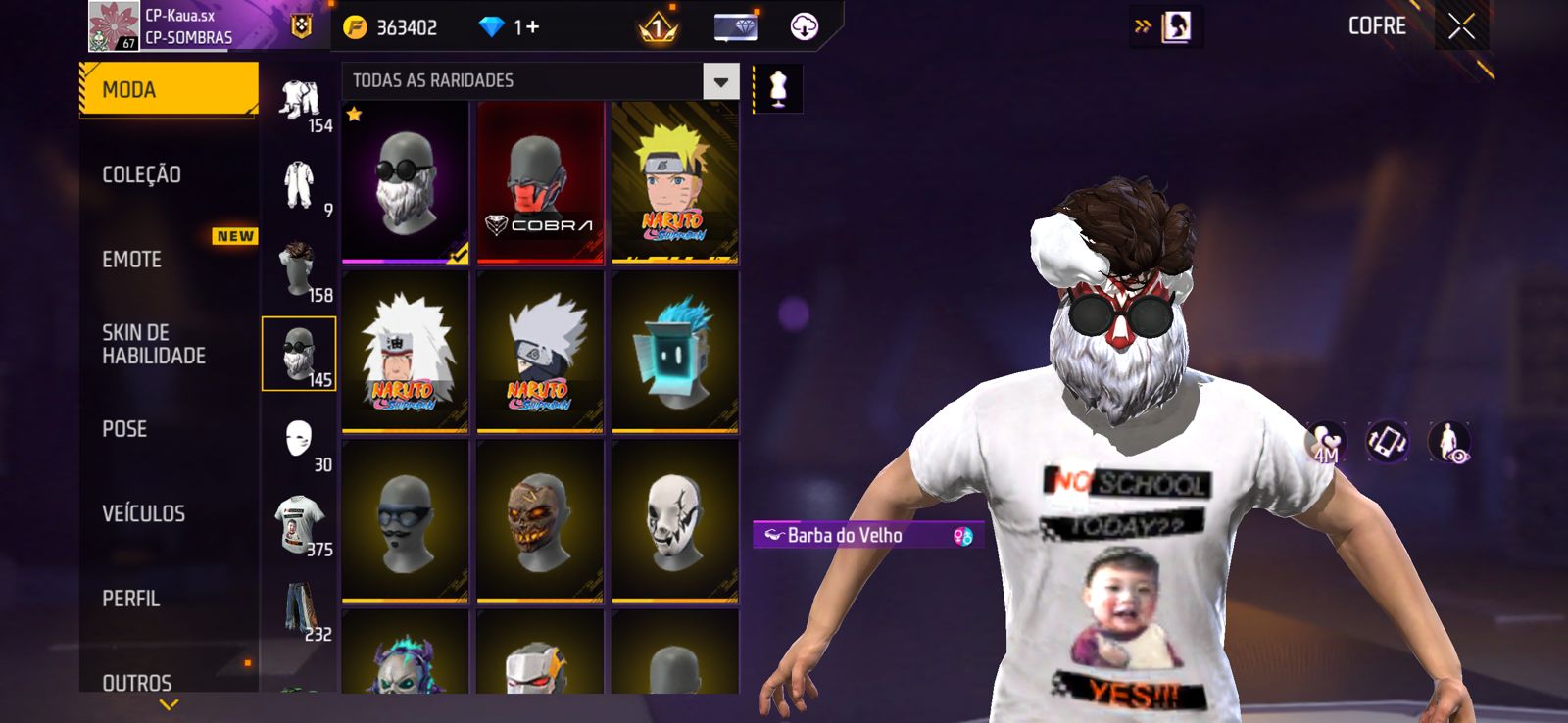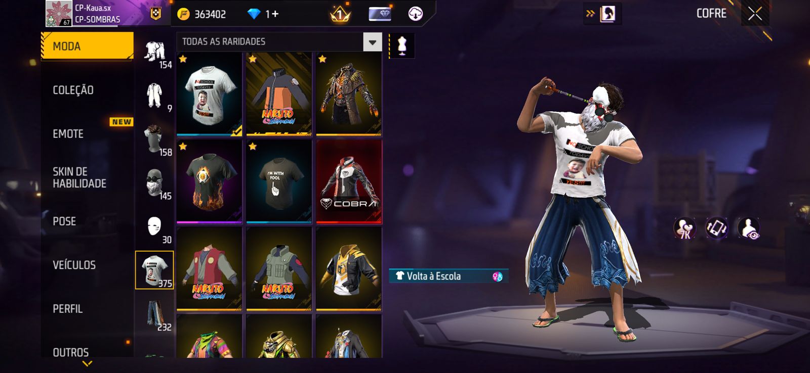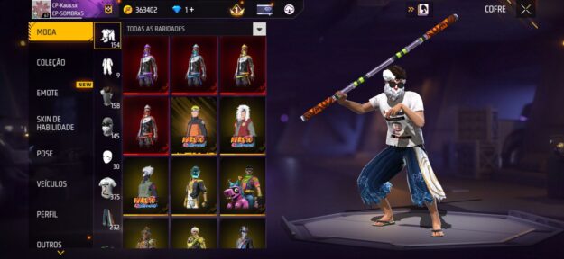 Conta free fire, rara com vários itens antigos.