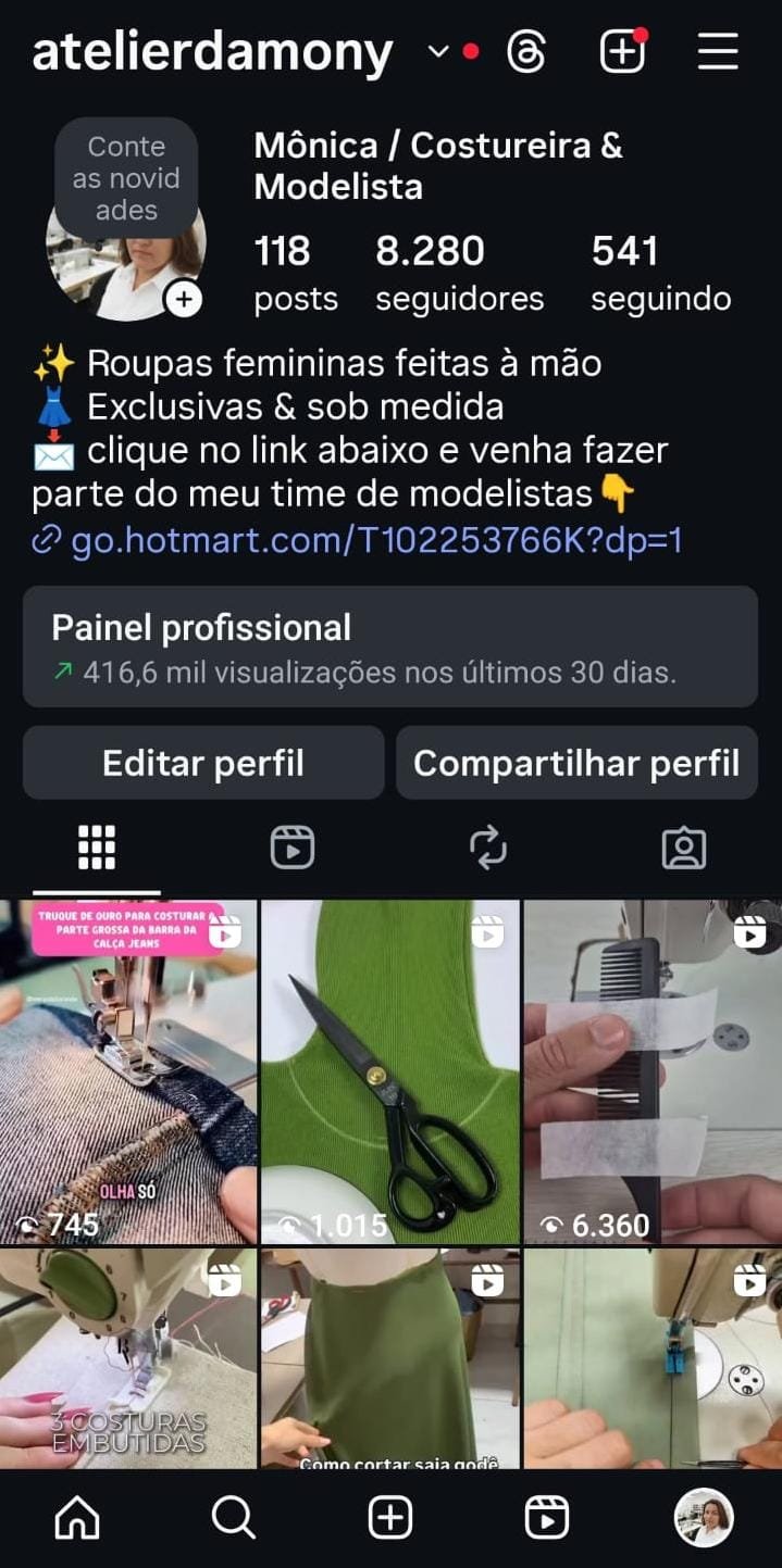 ✨Criei essa conta a um mês atrás e já tá com 10k de seguidores reais no nicho de costura! 🧵