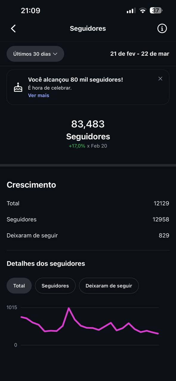Conta Instagram 83,4 Mil Seguidores