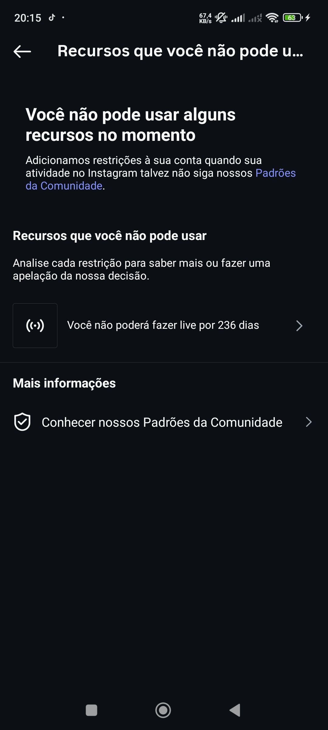 ⛔ | Restrição > A conta não pode fazer Live por 236 dias